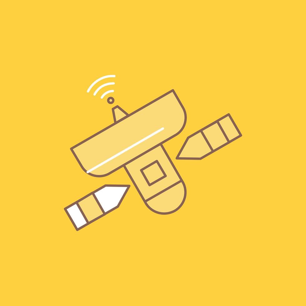 satellite. antenna. radar. space. Signal Flat Line Filled Icon. Beautiful Logo button over yellow background for UI and UX. website or mobile application vector