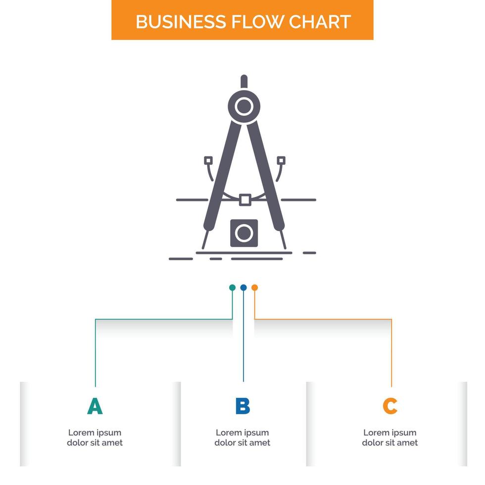 Design. measure. product. refinement. Development Business Flow Chart Design with 3 Steps. Glyph Icon For Presentation Background Template Place for text. Free Vector