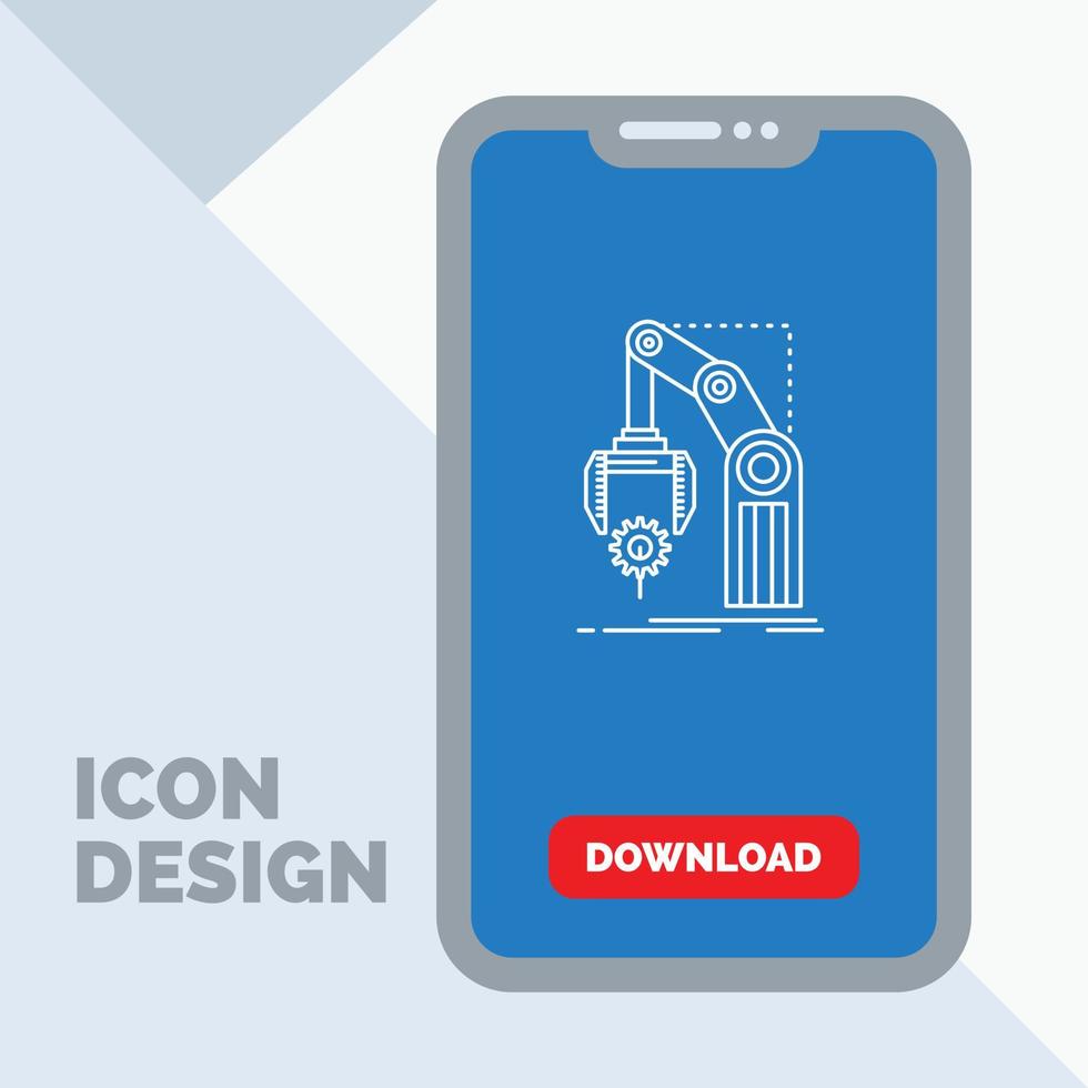 Automation. factory. hand. mechanism. package Line Icon in Mobile for Download Page vector