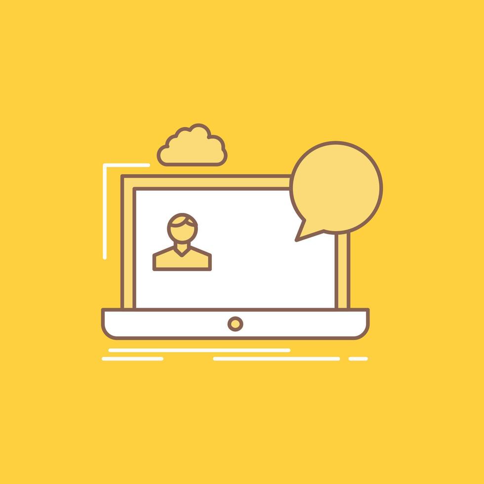 webinar. forum. online. seminar. website Flat Line Filled Icon. Beautiful Logo button over yellow background for UI and UX. website or mobile application vector