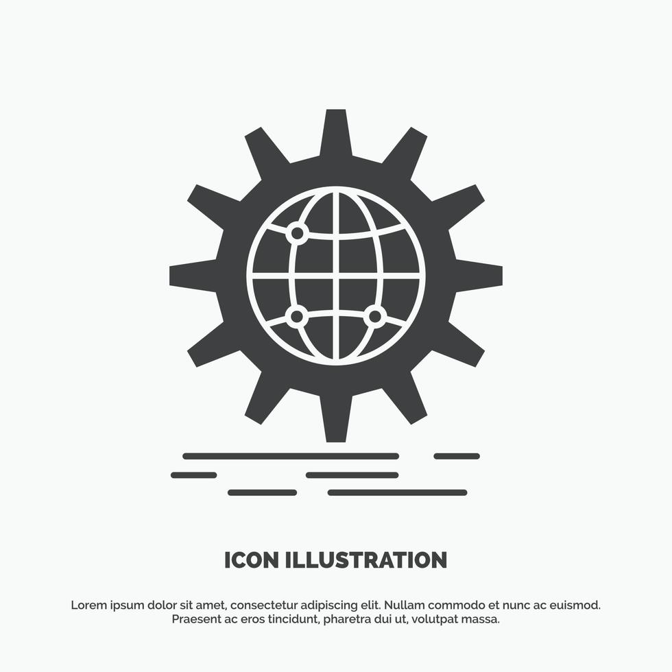 international. business. globe. world wide. gear Icon. glyph vector gray symbol for UI and UX. website or mobile application