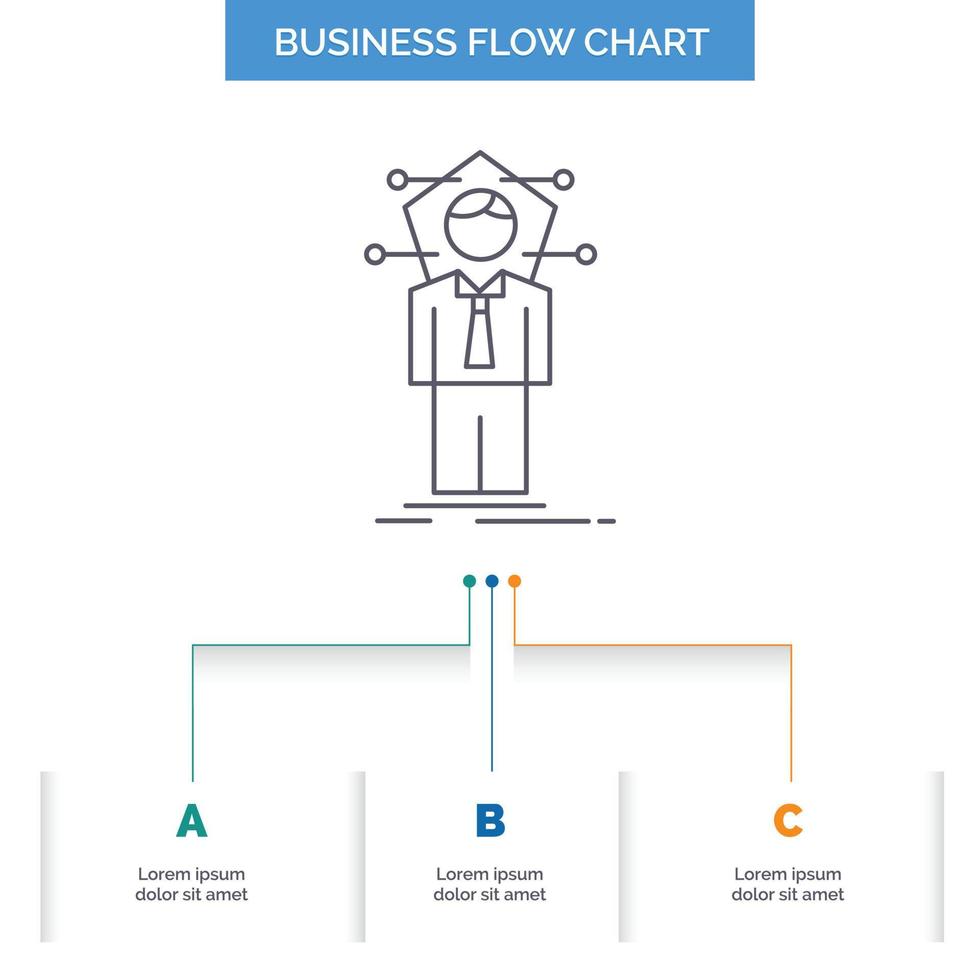 Business. connection. human. network. solution Business Flow Chart Design with 3 Steps. Line Icon For Presentation Background Template Place for text Free Vector