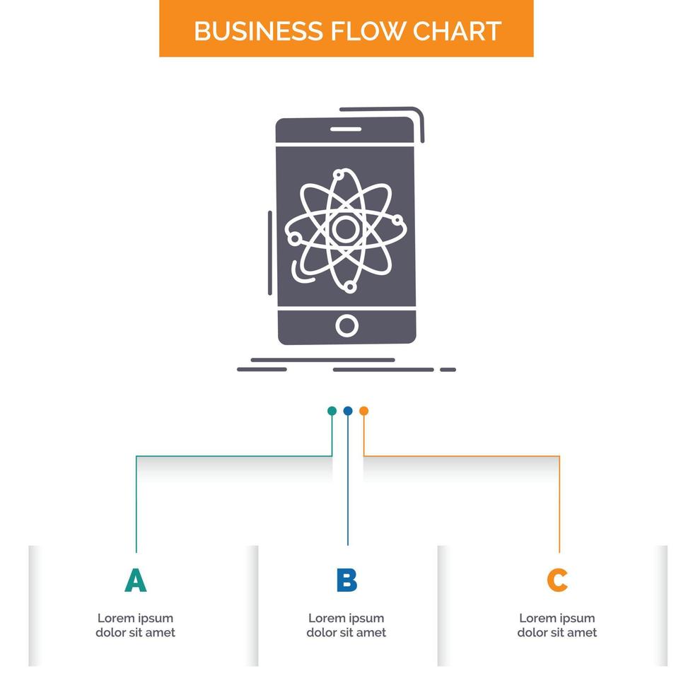data. information. mobile. research. science Business Flow Chart Design with 3 Steps. Glyph Icon For Presentation Background Template Place for text. Free Vector
