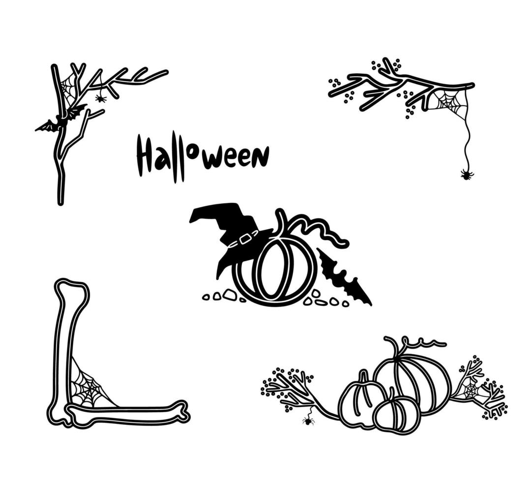 Set of Halloween elements with a pumpkin,web and spider, ghosts and a bat. Awesome design. Vector cillection for the design of monograms, invitations, frames Pro Vector