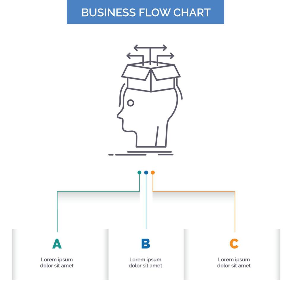 Data. extraction. head. knowledge. sharing Business Flow Chart Design with 3 Steps. Line Icon For Presentation Background Template Place for text vector