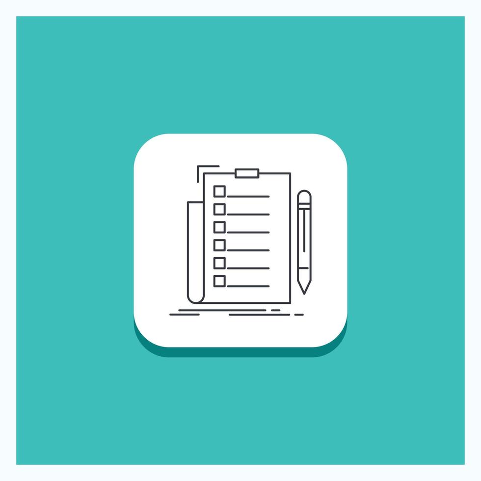 Round Button for expertise. checklist. check. list. document Line icon Turquoise Background vector