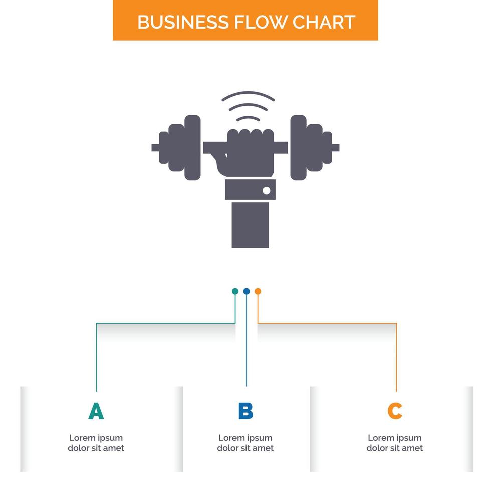 Dumbbell. gain. lifting. power. sport Business Flow Chart Design with 3 Steps. Glyph Icon For Presentation Background Template Place for text. Free Vector