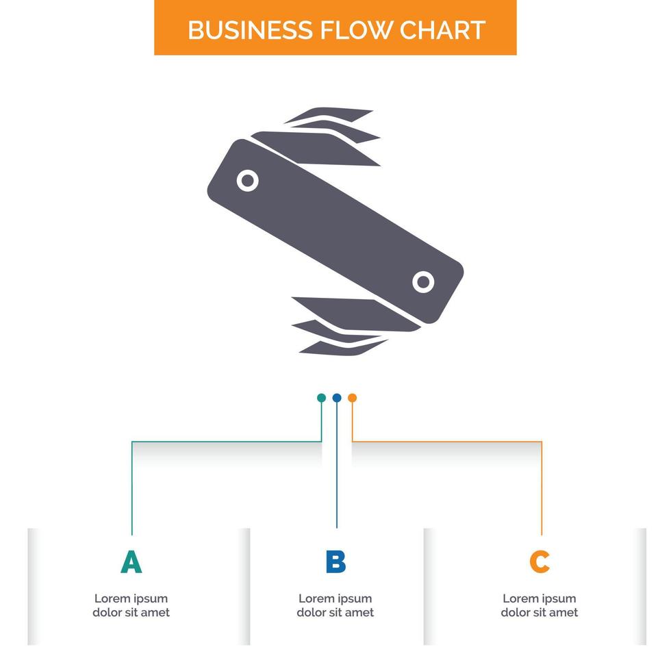 knife. army. camping. swiss. pocket Business Flow Chart Design with 3 Steps. Glyph Icon For Presentation Background Template Place for text. vector