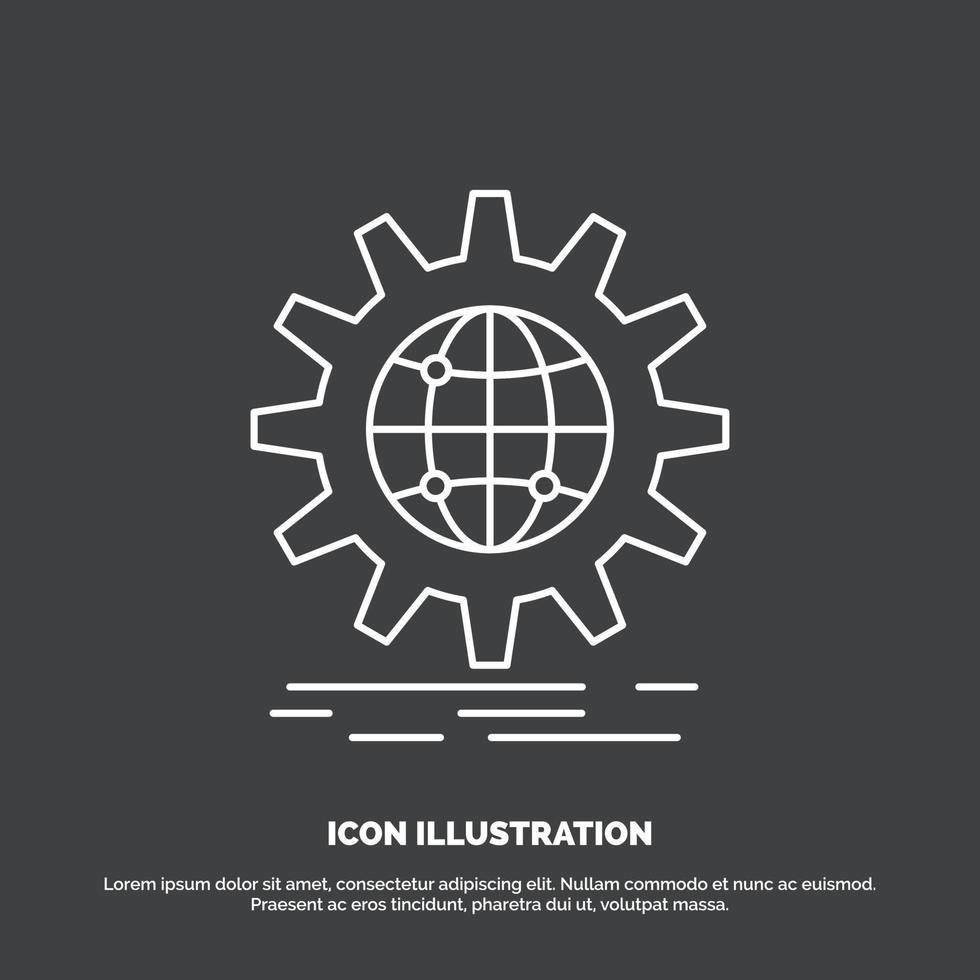 international. business. globe. world wide. gear Icon. Line vector symbol for UI and UX. website or mobile application
