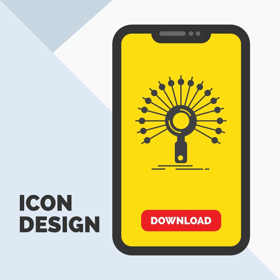 Data. information. informational. network. retrieval Glyph Icon in Mobile for Download Page. Yellow Background Free Vector