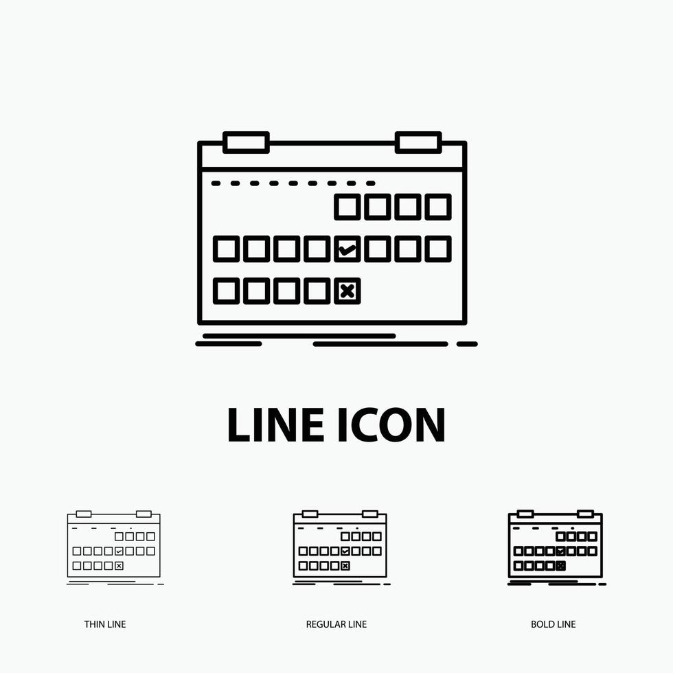 Calendar. date. event. release. schedule Icon in Thin. Regular and Bold Line Style. Vector illustration
