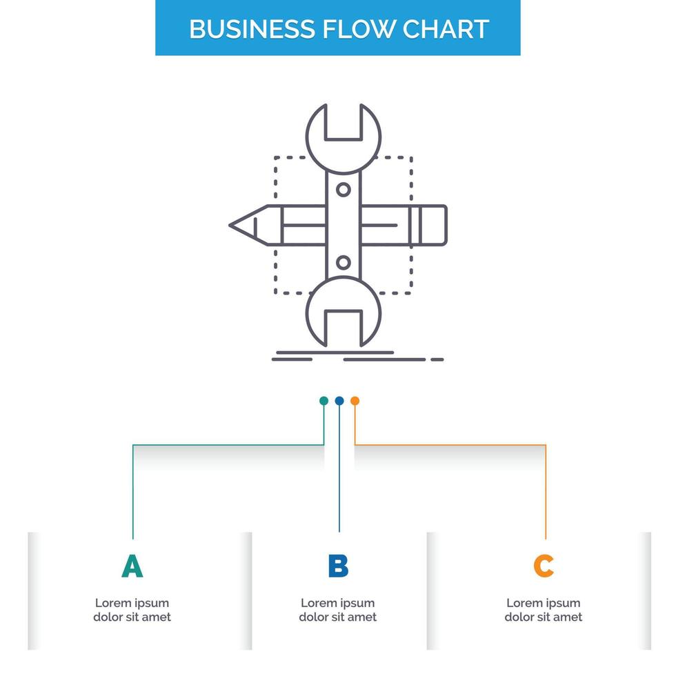 Build. design. develop. sketch. tools Business Flow Chart Design with 3 Steps. Line Icon For Presentation Background Template Place for text Free Vector