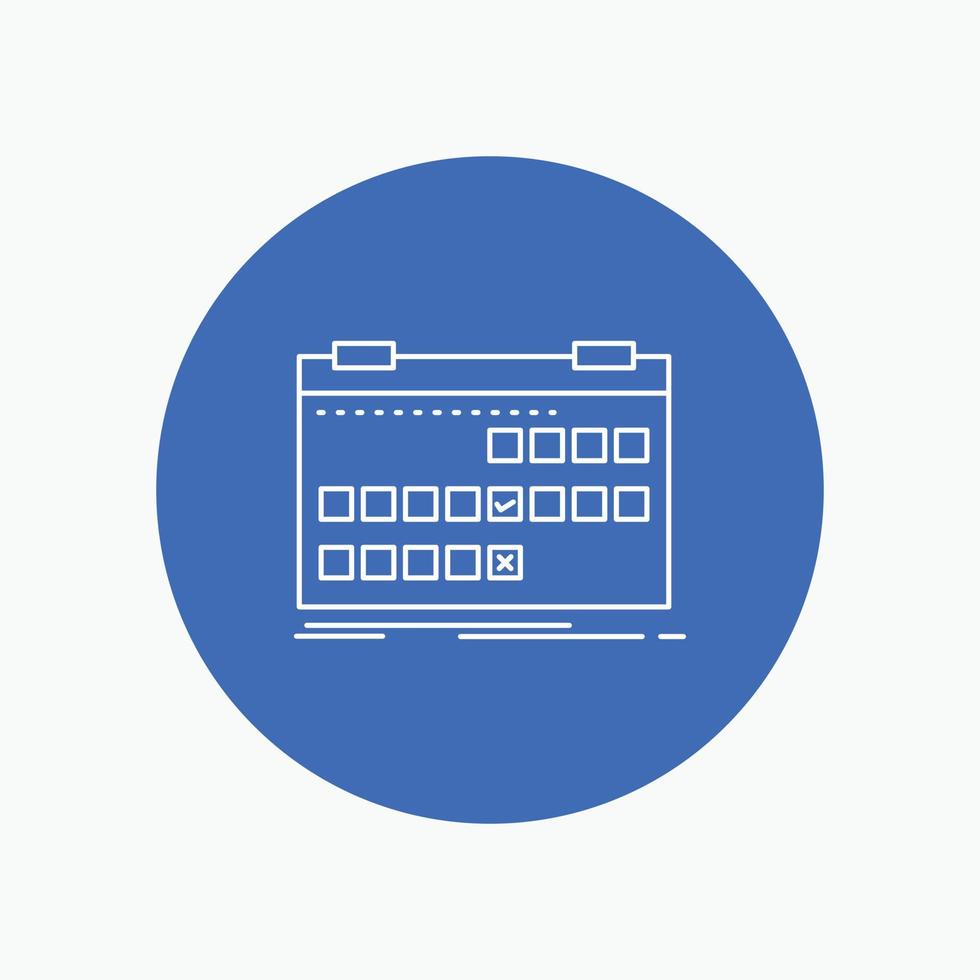 Calendar. date. event. release. schedule White Line Icon in Circle background. vector icon illustration