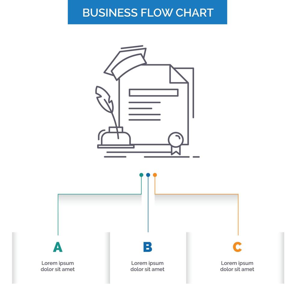 certificate. degree. education. award. agreement Business Flow Chart Design with 3 Steps. Line Icon For Presentation Background Template Place for text Free Vector