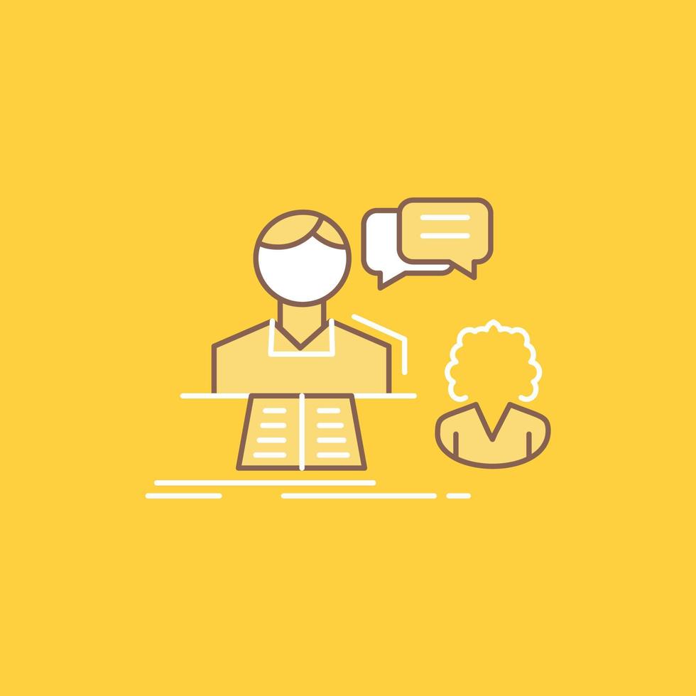 consultation. chat. answer. contact. support Flat Line Filled Icon. Beautiful Logo button over yellow background for UI and UX. website or mobile application Free Vector