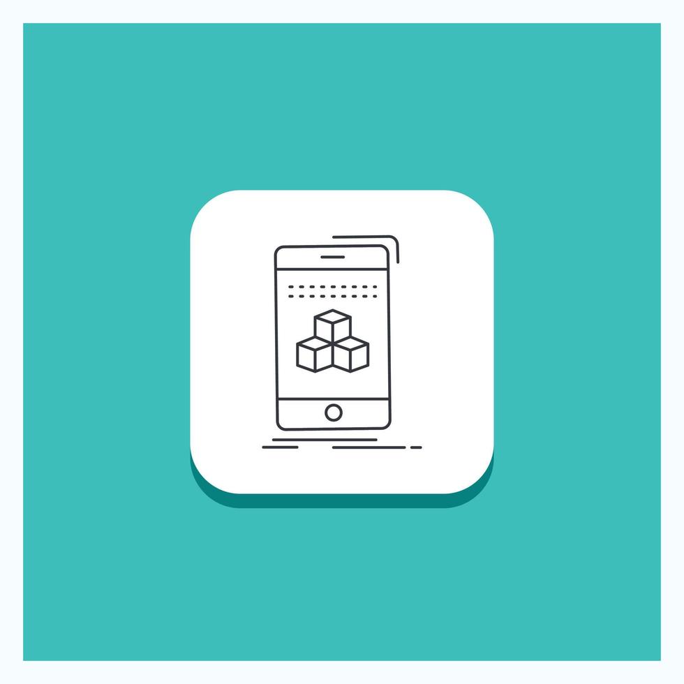 Round Button for box. 3d. cube. smartphone. product Line icon Turquoise Background Free Vector