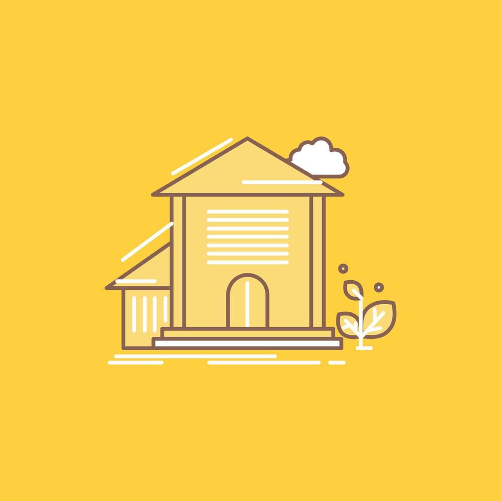 Home. house. Apartment. building. office Flat Line Filled Icon. Beautiful Logo button over yellow background for UI and UX. website or mobile application vector