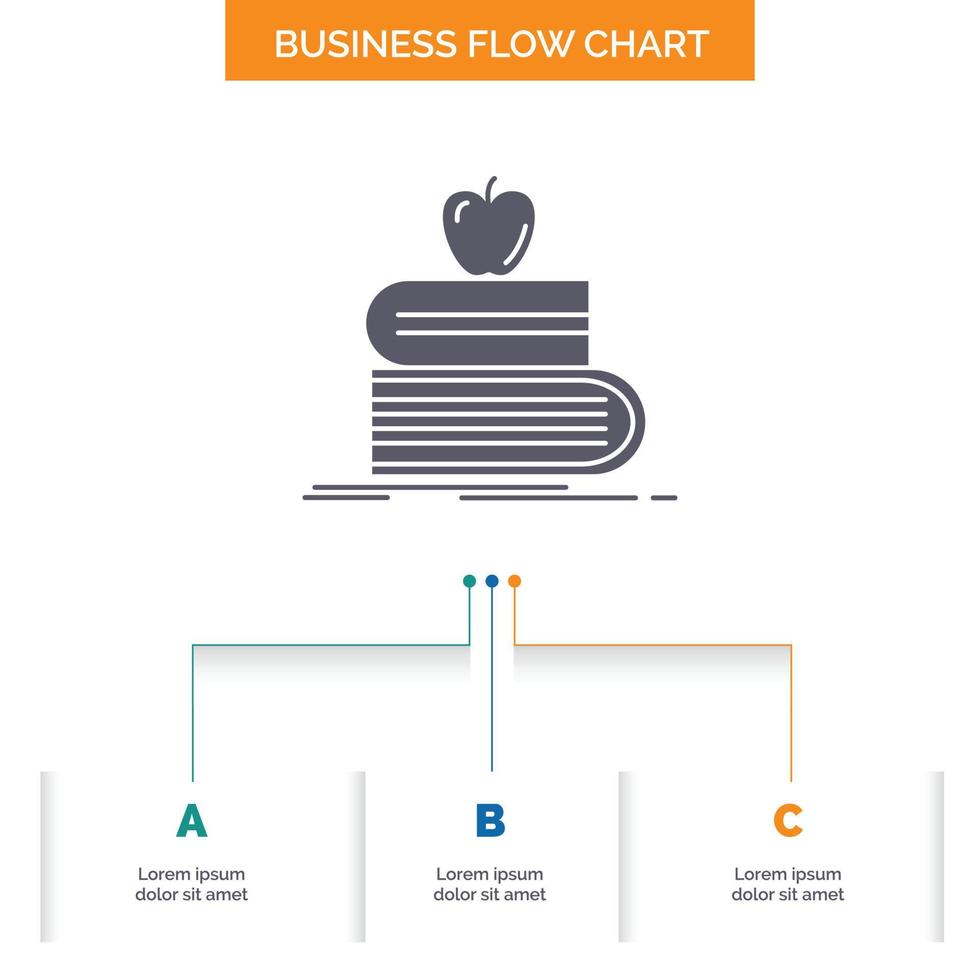 back to school. school. student. books. apple Business Flow Chart Design with 3 Steps. Glyph Icon For Presentation Background Template Place for text. Free Vector