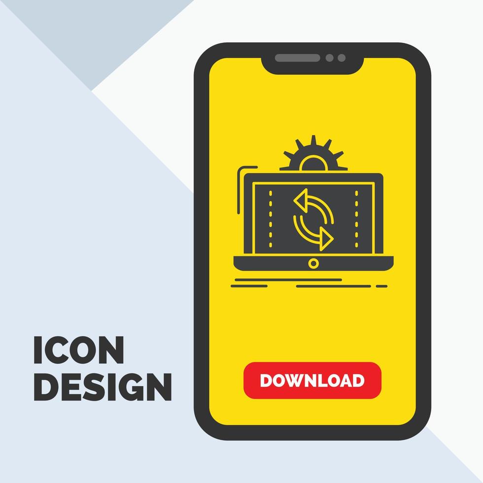 data. processing. Analysis. reporting. sync Glyph Icon in Mobile for Download Page. Yellow Background vector