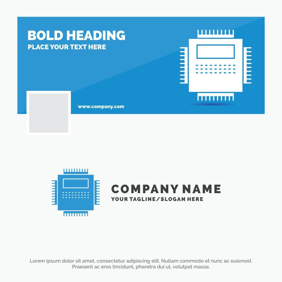 Blue Business Logo Template for Processor. Hardware. Computer. PC. Technology. Facebook Timeline Banner Design. vector web banner background illustration