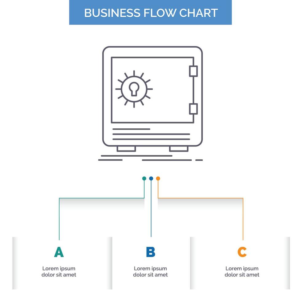 Bank. deposit. safe. safety. strongbox Business Flow Chart Design with 3 Steps. Line Icon For Presentation Background Template Place for text Free Vector