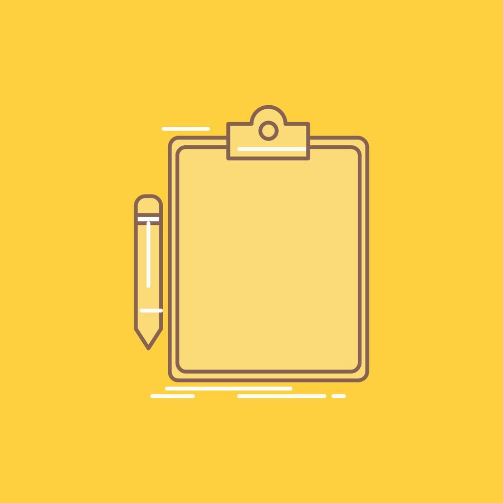 Contract. check. Business. done. clip board Flat Line Filled Icon. Beautiful Logo button over yellow background for UI and UX. website or mobile application vector