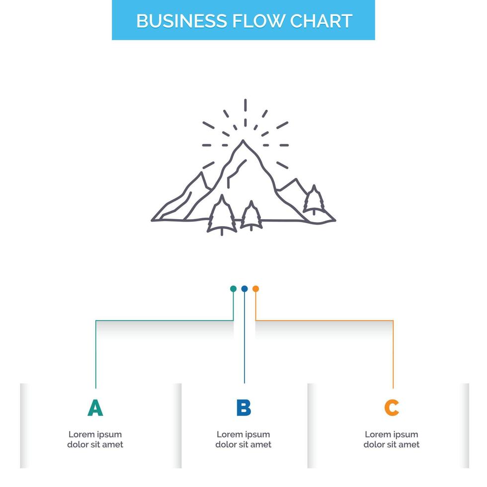hill. landscape. nature. mountain. fireworks Business Flow Chart Design with 3 Steps. Line Icon For Presentation Background Template Place for text vector