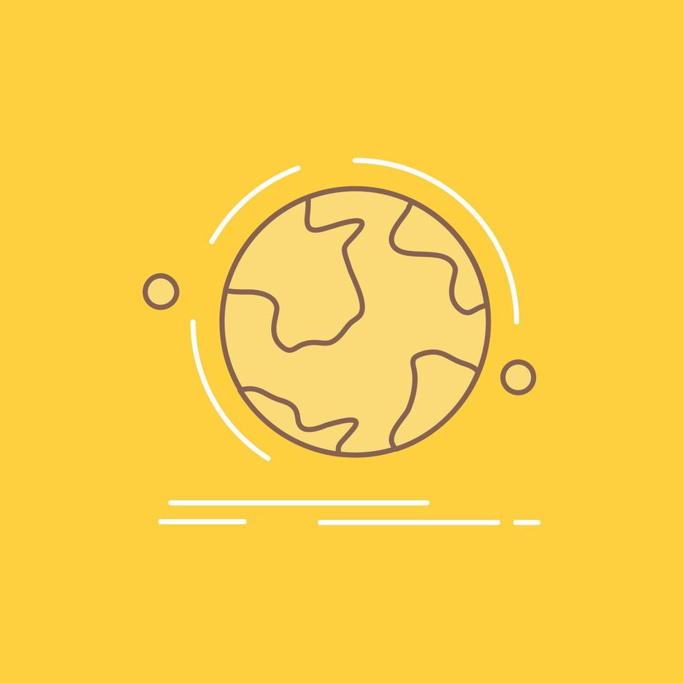 globe. world. discover. connection. network Flat Line Filled Icon. Beautiful Logo button over yellow background for UI and UX. website or mobile application vector