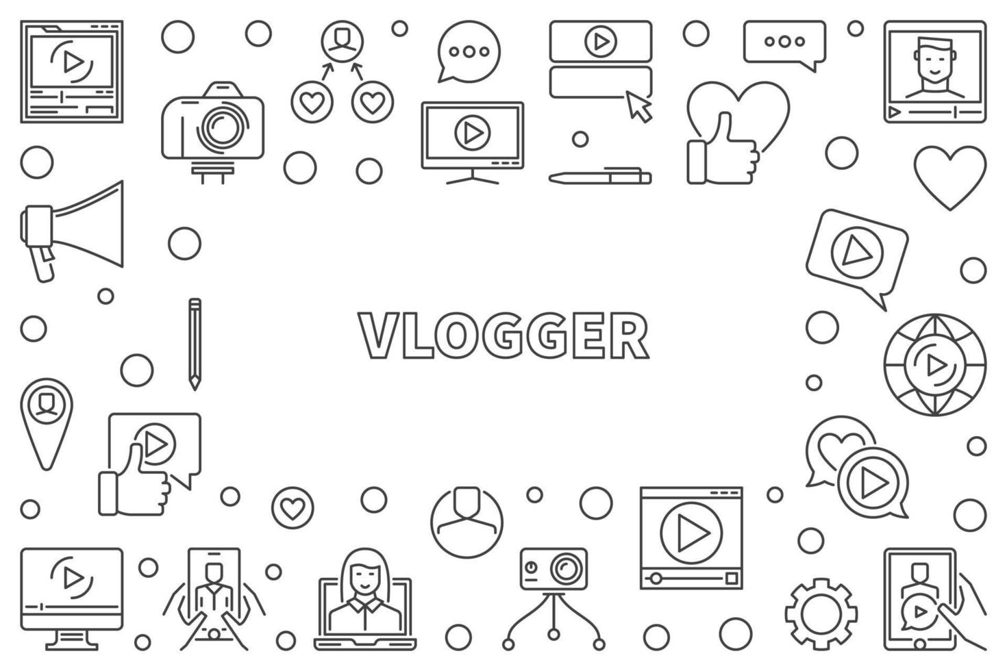 Vlogger vector illustration or horizontal frame in thin line style Pro Vector