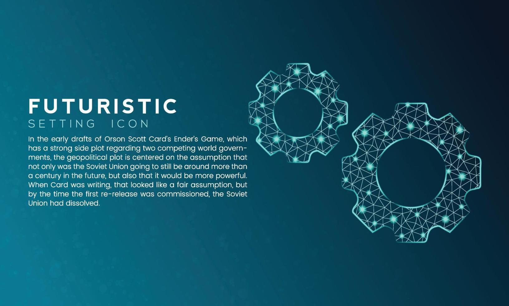 Blue futuristic setting icon concept with polygon node connected dots and neon effect Pro Vector