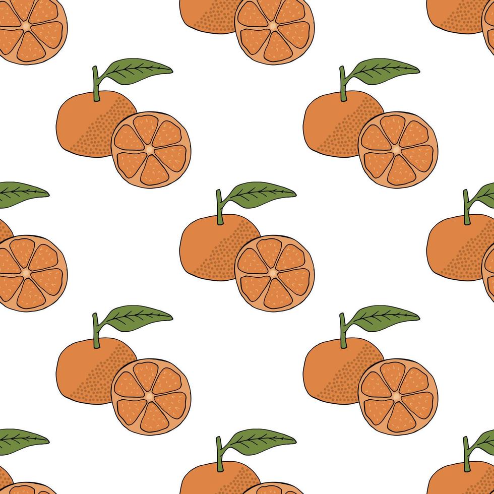 Seamless pattern with tangerine on white background. Vector image. Pro Vector