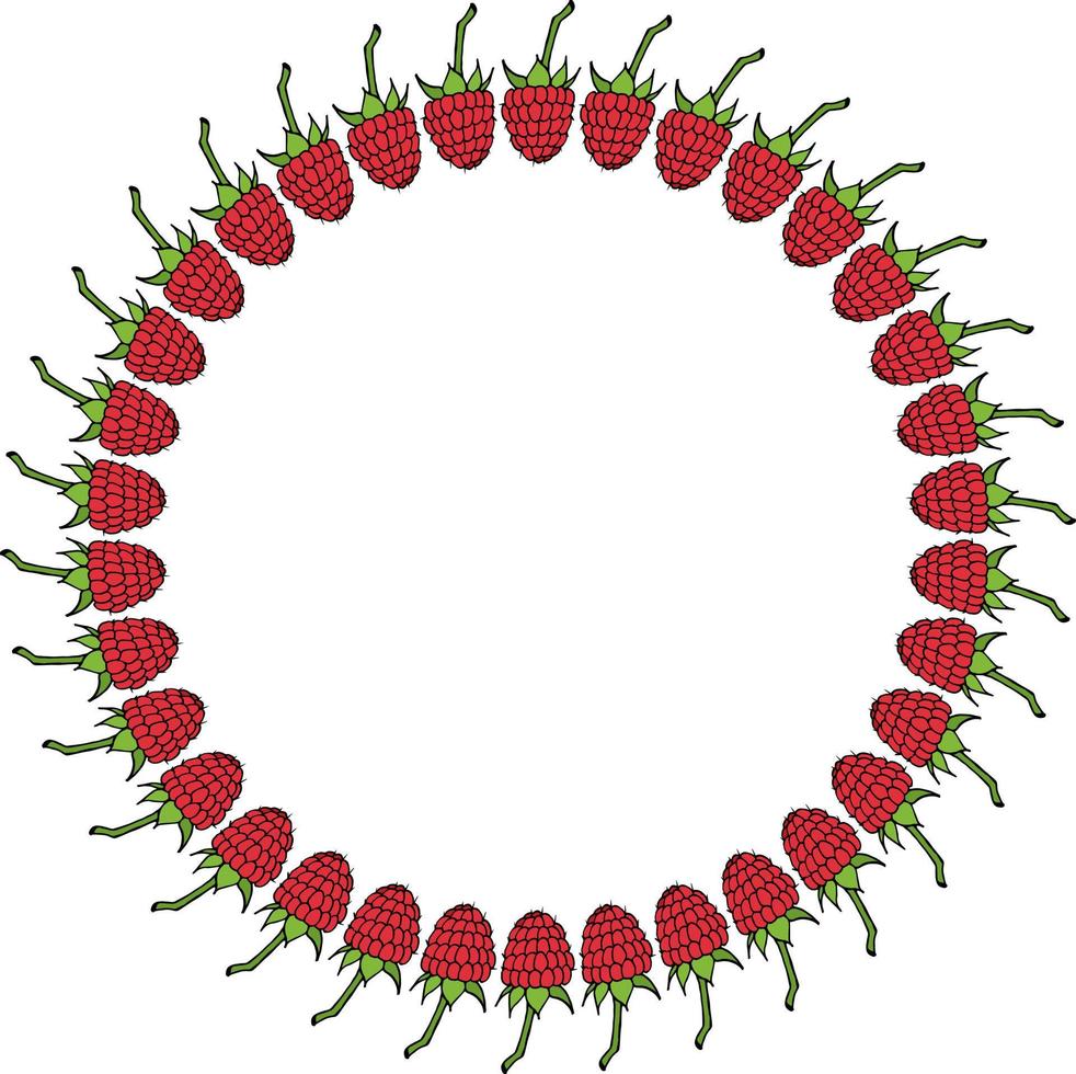 Round frame with raspberry on white background. Vector image. Pro Vector
