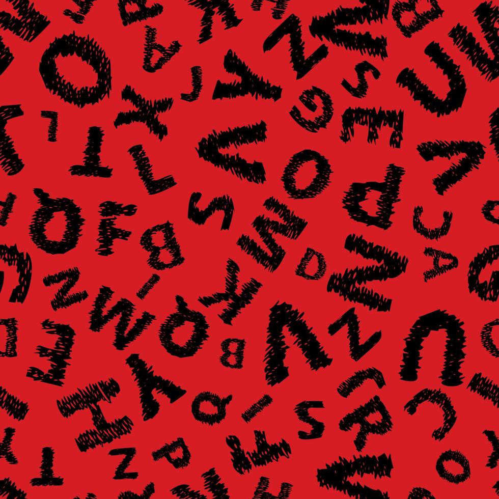 Doodle alphabet seamless background. Endless vector pattern with black letters on a red background. Pro Vector