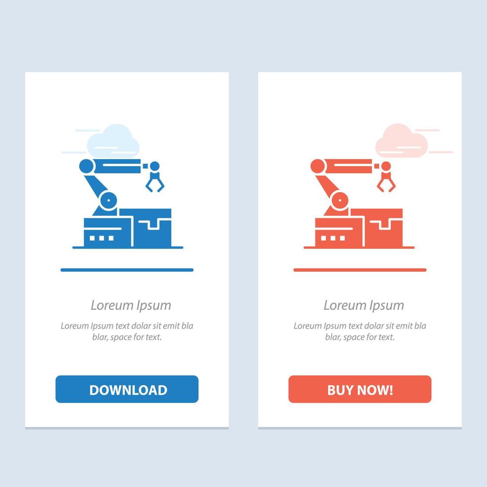 Automated Robotic Arm Technology  Blue and Red Download and Buy Now web Widget Card Template vector
