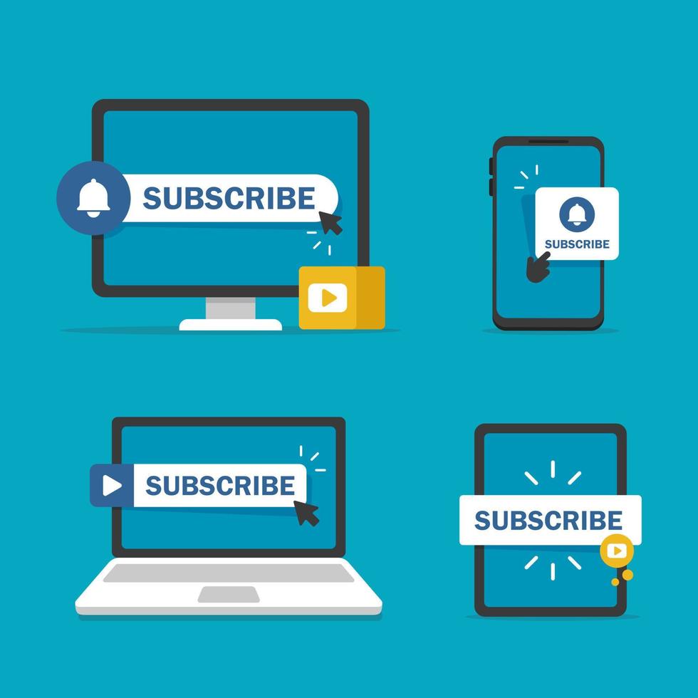 Laptop computer with subscribe button,Subscribe icon design, video channel watermark design Pro Vector