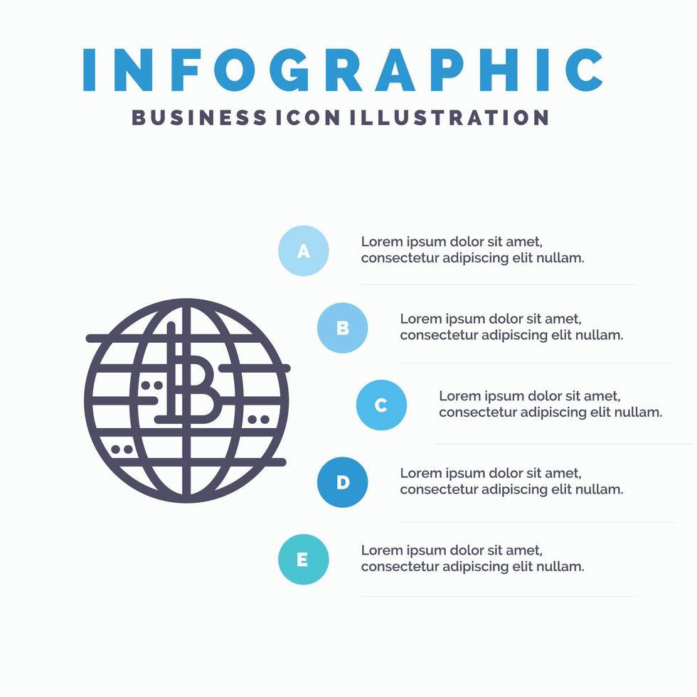 Future Money Bitcoin Block chain Crypto currency Decentralized Line icon with 5 steps presentation i Free Vector