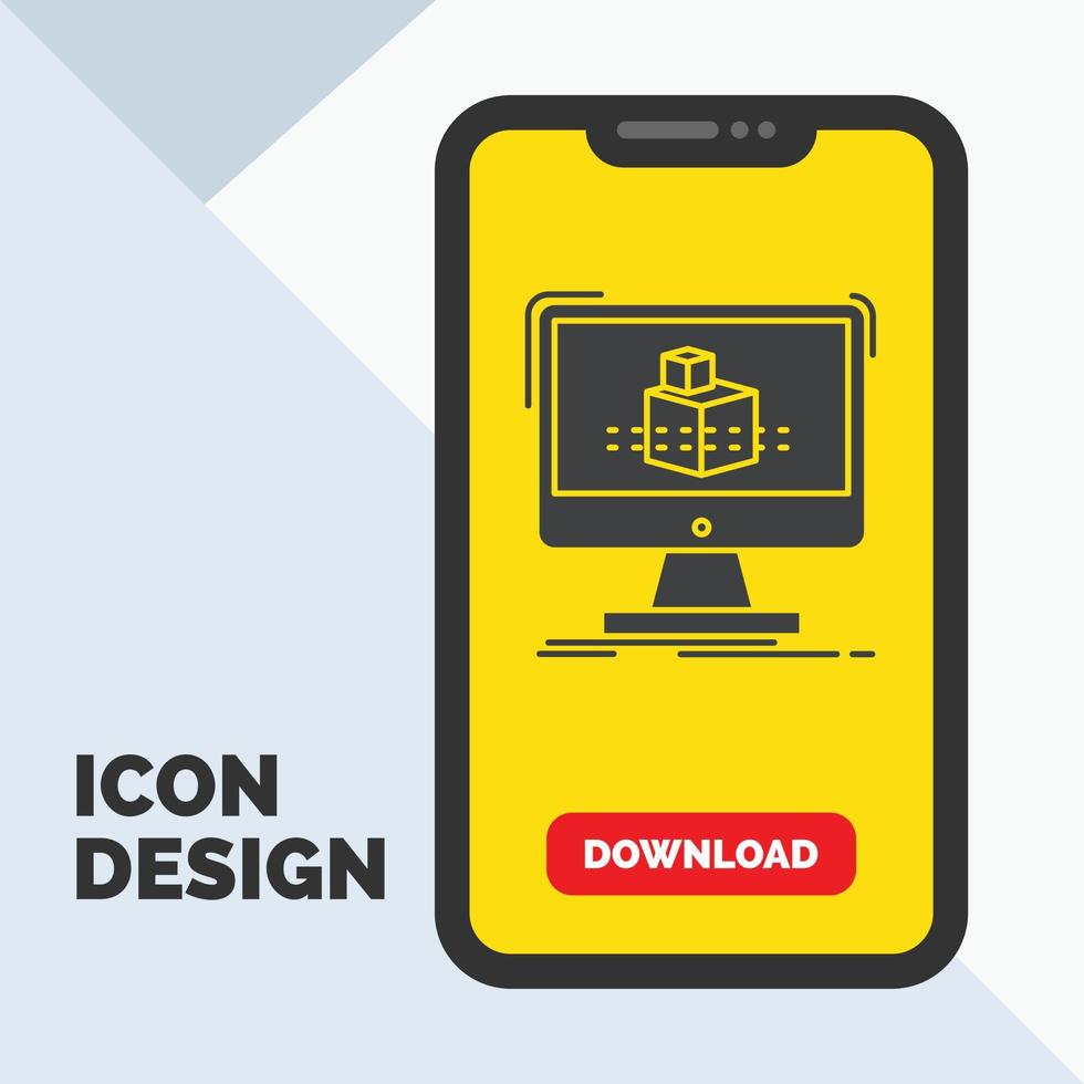 3d. cube. dimensional. modelling. sketch Glyph Icon in Mobile for Download Page. Yellow Background vector