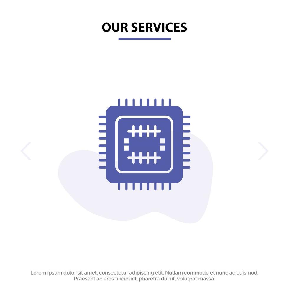 Our Services System Tech Technology Cpu Solid Glyph Icon Web card Template vector