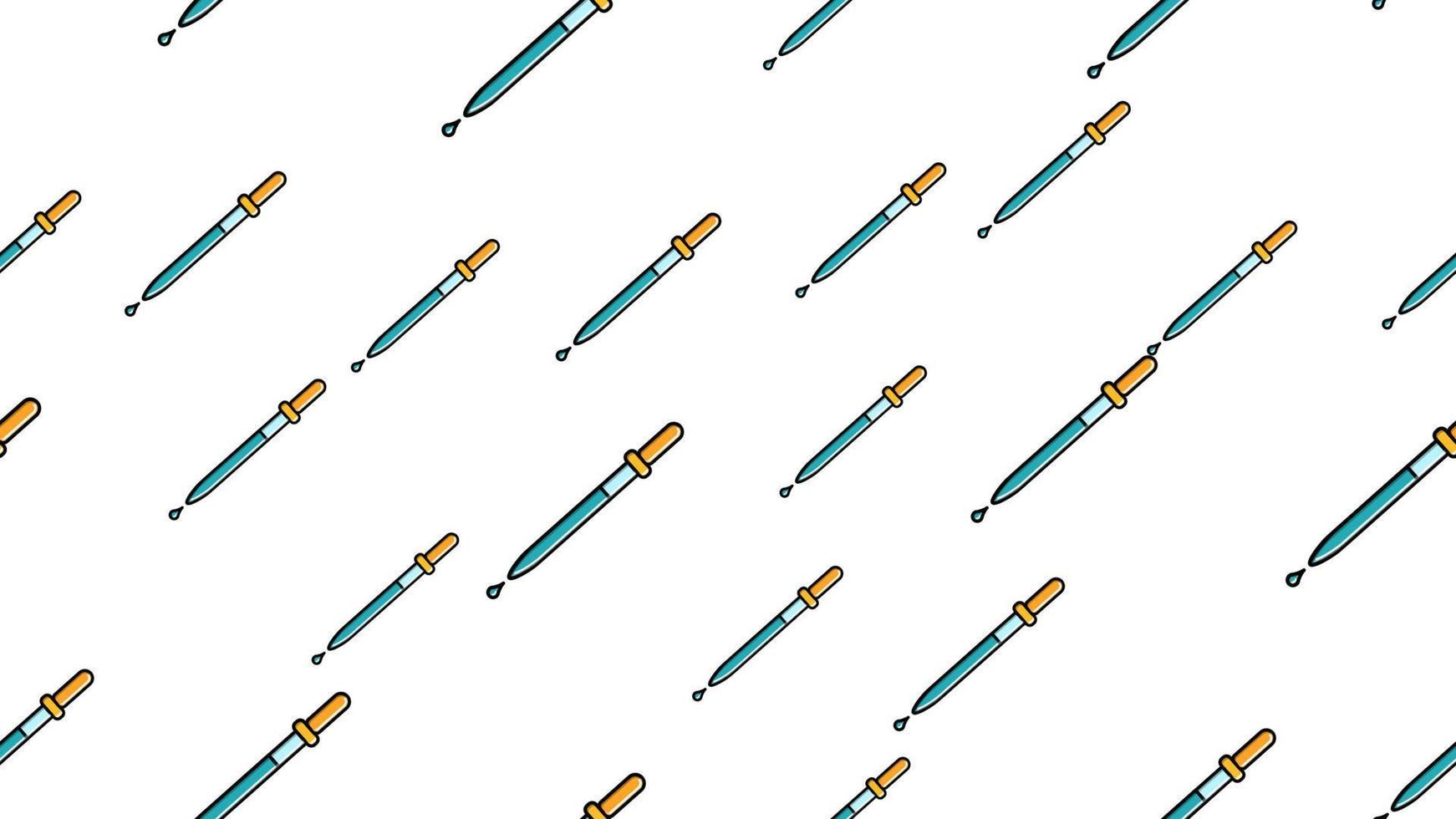 Seamless pattern texture of endless repeating scientific medicine droppers pipettes for titration, instillation of medication with drops on a white background. Vector illustration Pro Vector