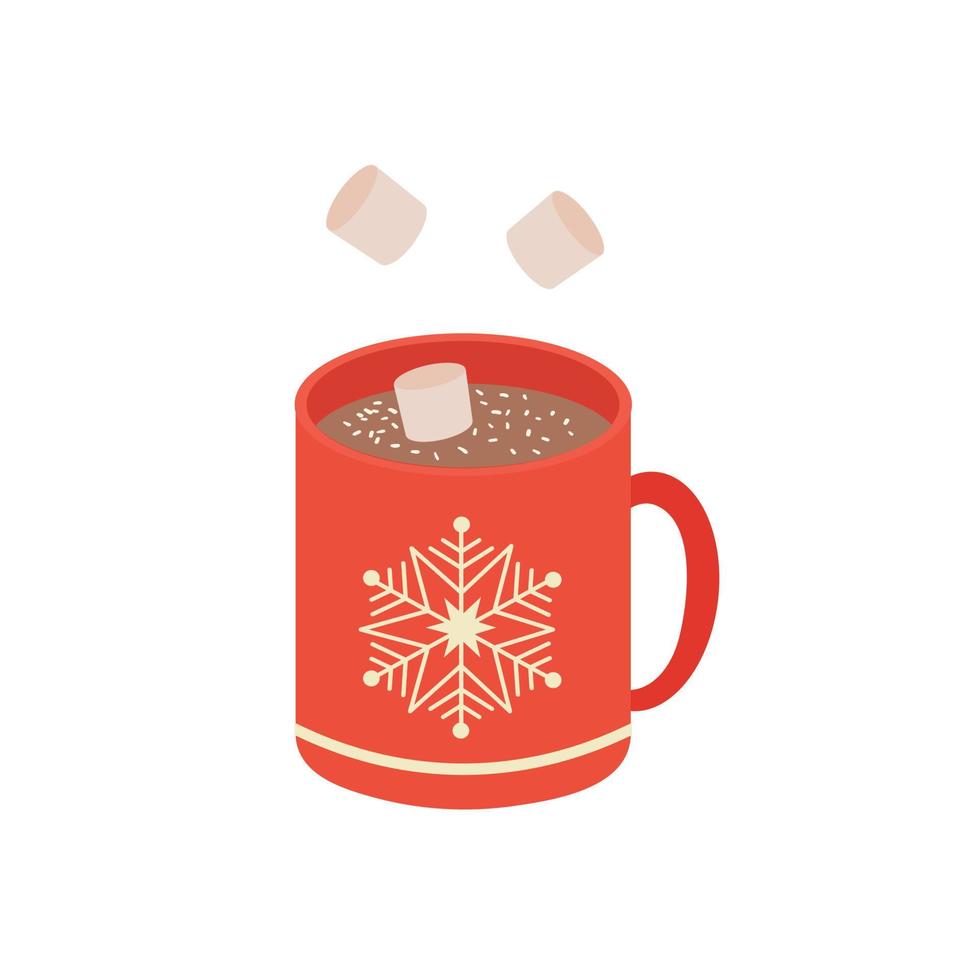Hot chocolate with marshmallows. A cup with an ornament in the form of a snowflake. Vector illustration isolated on a white background Pro Vector