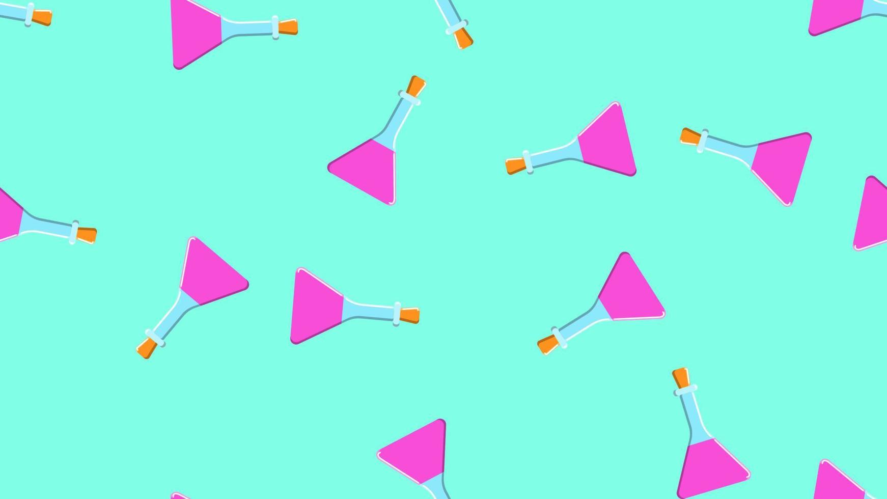 Seamless pattern texture of endless repeating triangular violet medical chemical glass science test tubes cans flasks on blue background. Vector illustration Pro Vector