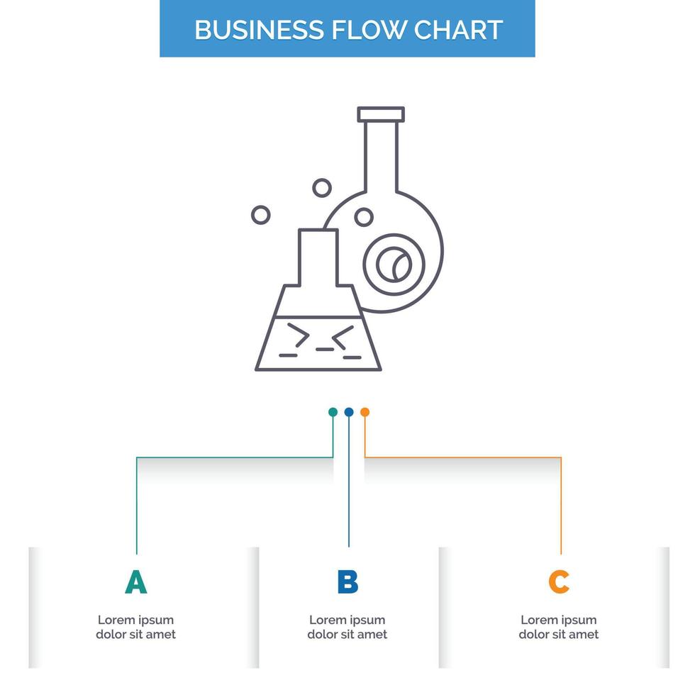 beaker. lab. test. tube. scientific Business Flow Chart Design with 3 Steps. Line Icon For Presentation Background Template Place for text Free Vector