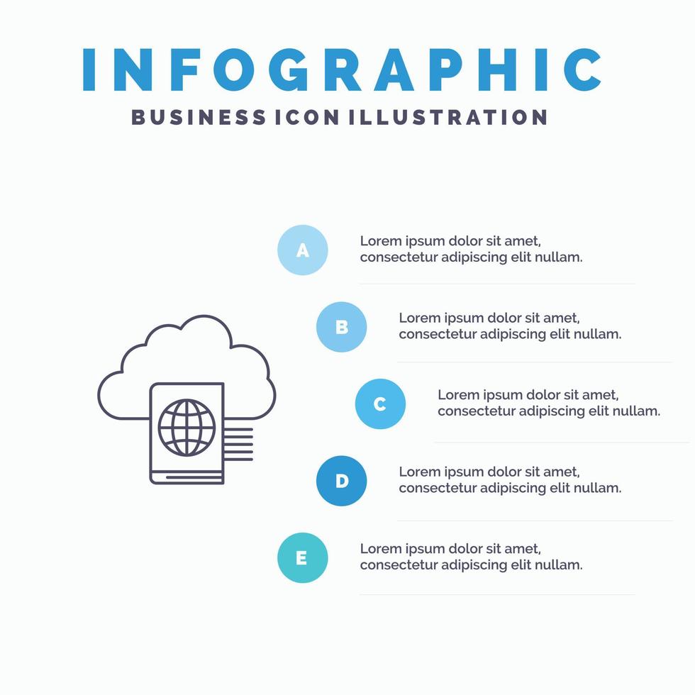 Cloud Reading Folder Upload Line icon with 5 steps presentation infographics Background vector