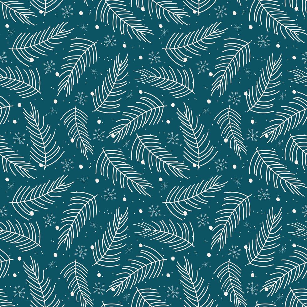 Seamless spruce branch pattern. Seamless tree branch vector with snowflakes in white on blue background. Christmas pattern for fabric or wrapping paper print. Pro Vector