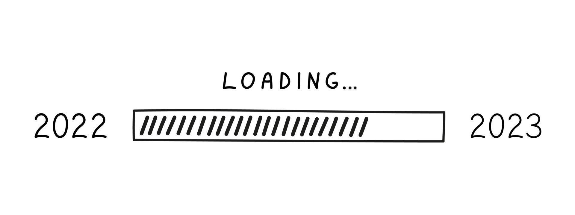 Load bar 2023 new year in doodle style, vector illustration. Hand drawn loading symbol, black isolated element on a white background. Sketch progress bar for print and design Pro Vector