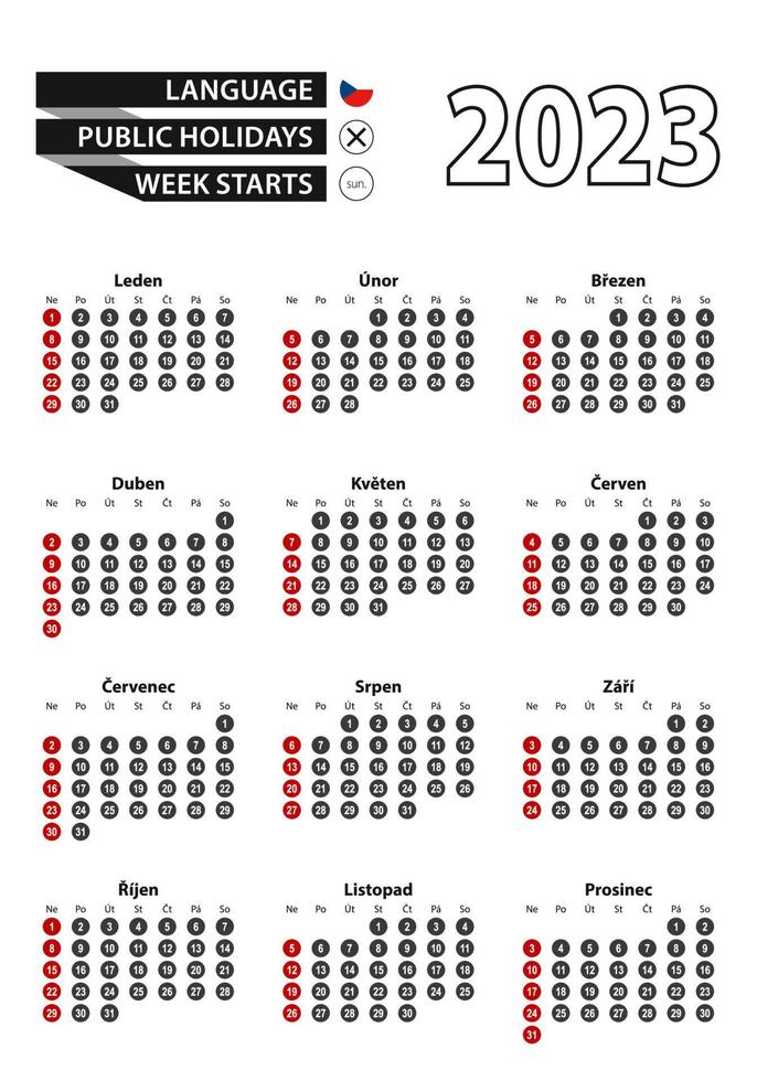 Czech calendar 2023 with numbers in circles, week starts on Sunday. 2023 with flag of Czech Republic Pro Vector