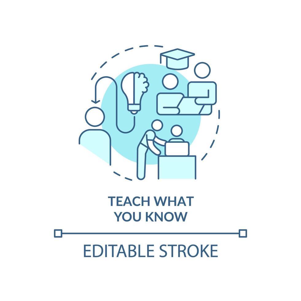 Teach what you know turquoise concept icon. Share knowledge. Learning technique abstract idea thin line illustration. Isolated outline drawing. Editable stroke. Pro Vector