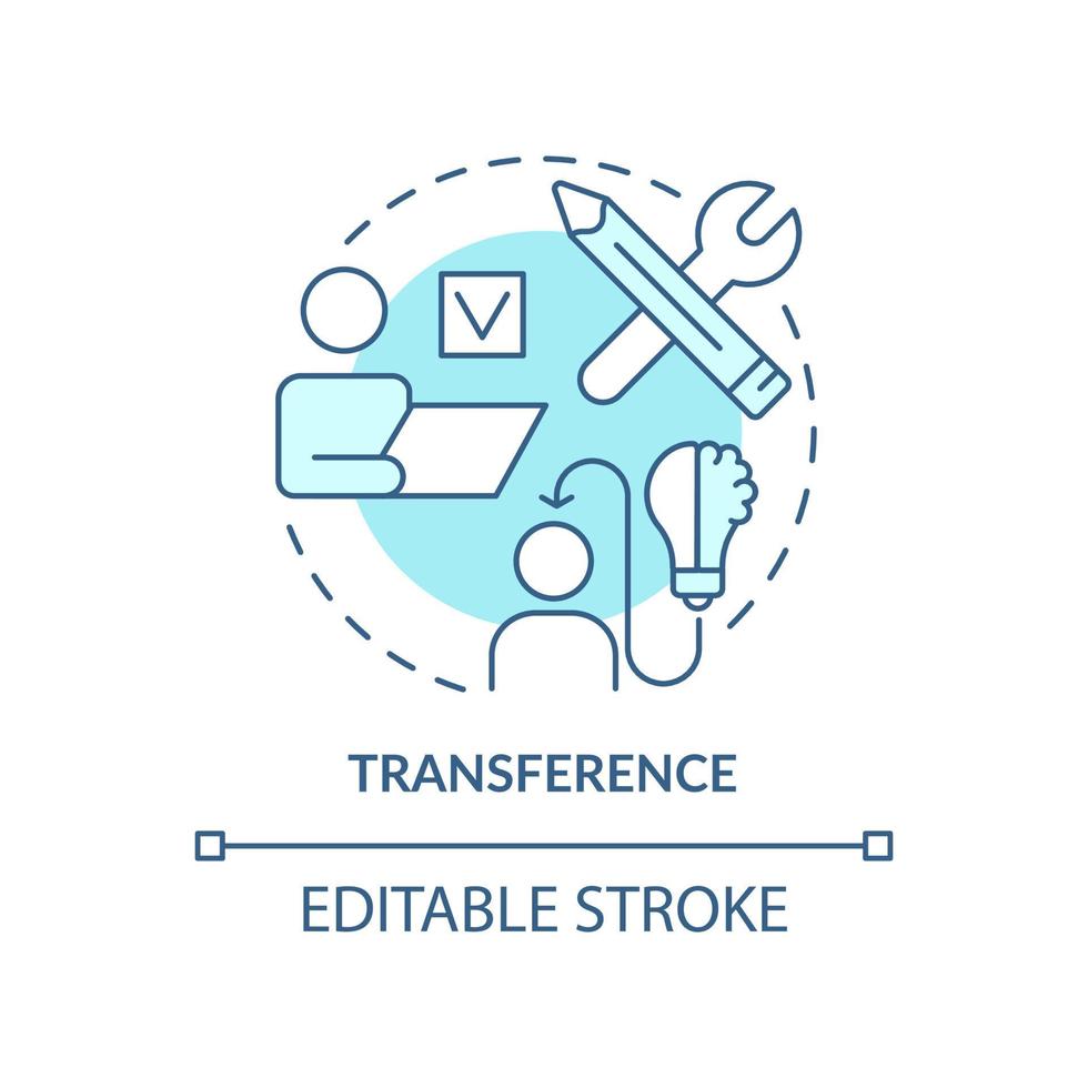 Transference turquoise concept icon. Apply knowledge to work. Principle of learning abstract idea thin line illustration. Isolated outline drawing. Editable stroke. Pro Vector
