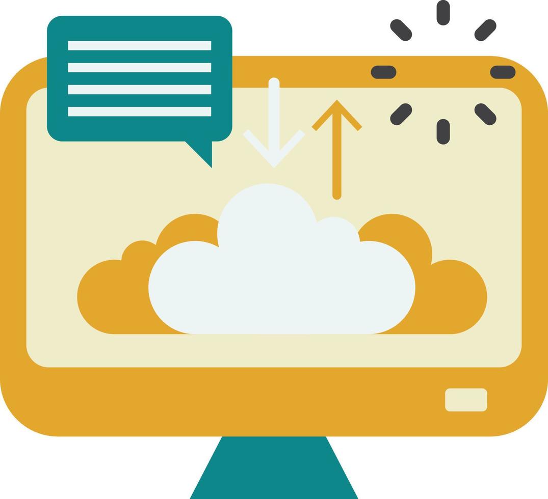 Uploading data by a desktop computer illustration in minimal style Pro Vector