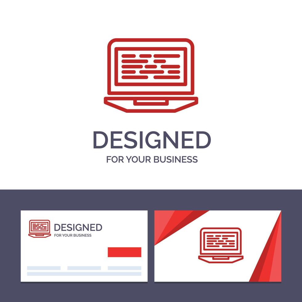 Creative Business Card and Logo template Laptop Coding Code Screen Computer Vector Illustration